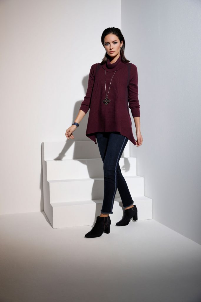 • Turtlenecks betonen nicht nur das Gesicht, sondern auf den Hals. Ist dieser bei Dir eher kurz und kräftig? Dann setze auf Modelle mit kürzerem und weit geschnittenem Kragen.